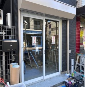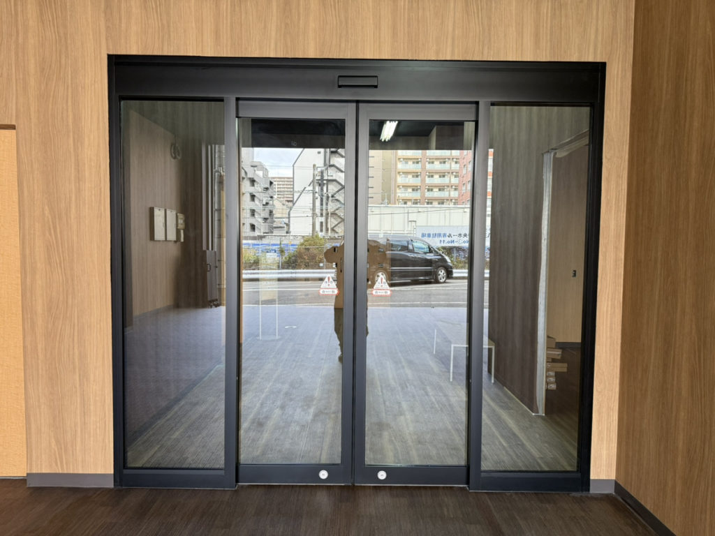 ビル入口 自動ドア枠設置