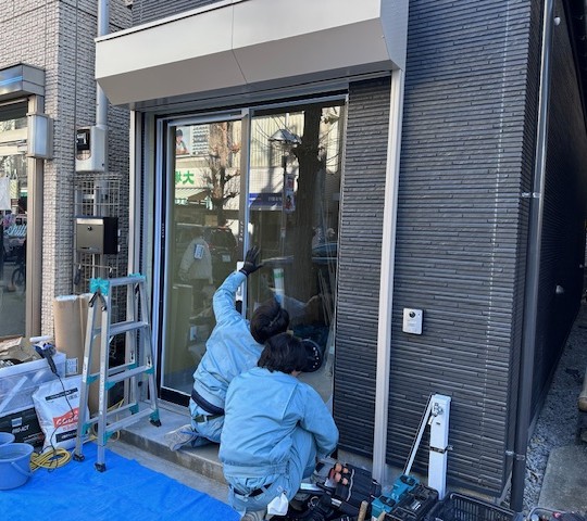 店舗入口に引戸の取り付けをしました。